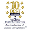 - American Institute of Criminal Law Attorneys: Top 10 in Client Satisfaction